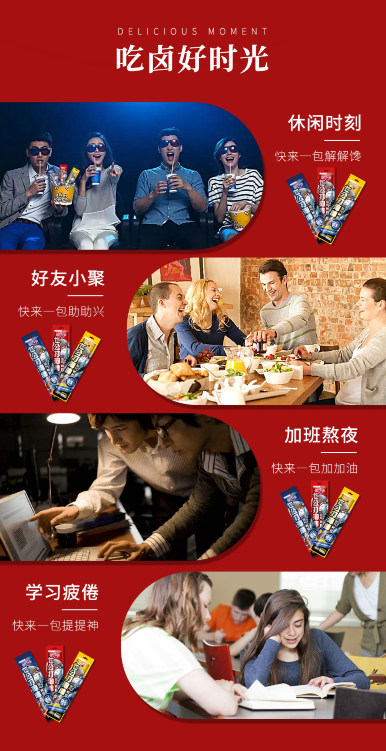 鹵味制品做法獨(dú)特,熱做冷吃,鮮香入味,如今企業(yè)間爭相斗法,醬鹵、烘烤,十三香等新口味層出不窮。“重口味”滿足味蕾,在身體內(nèi)形成讓人感到幸福的多巴胺,讓人吃了還想,久吃不膩,復(fù)購幾率大大增加。