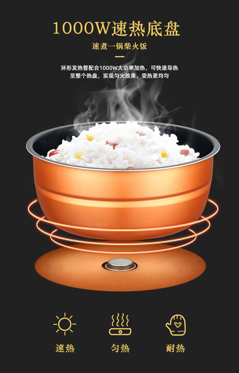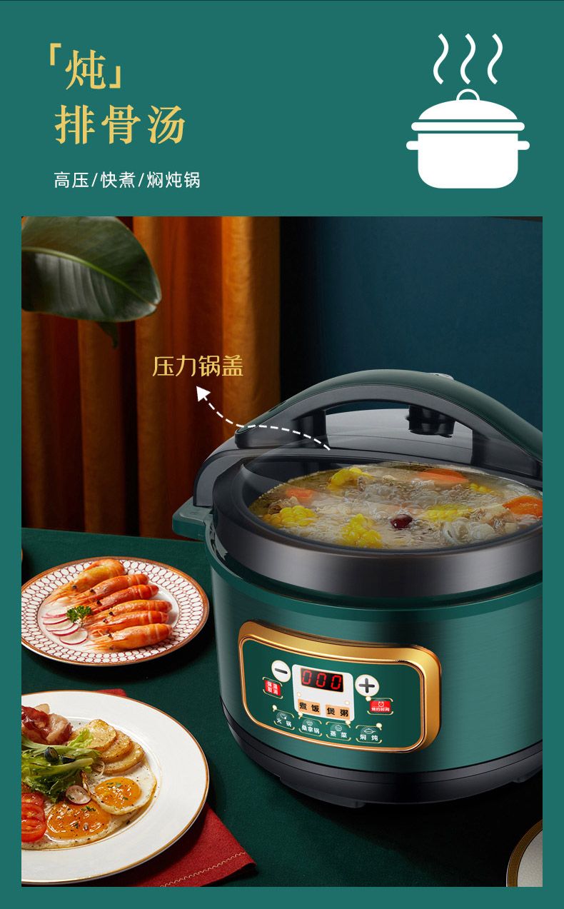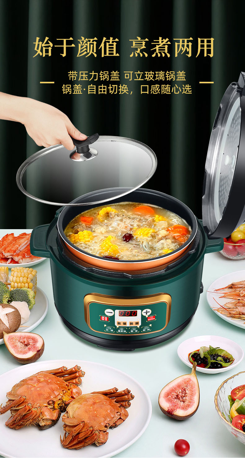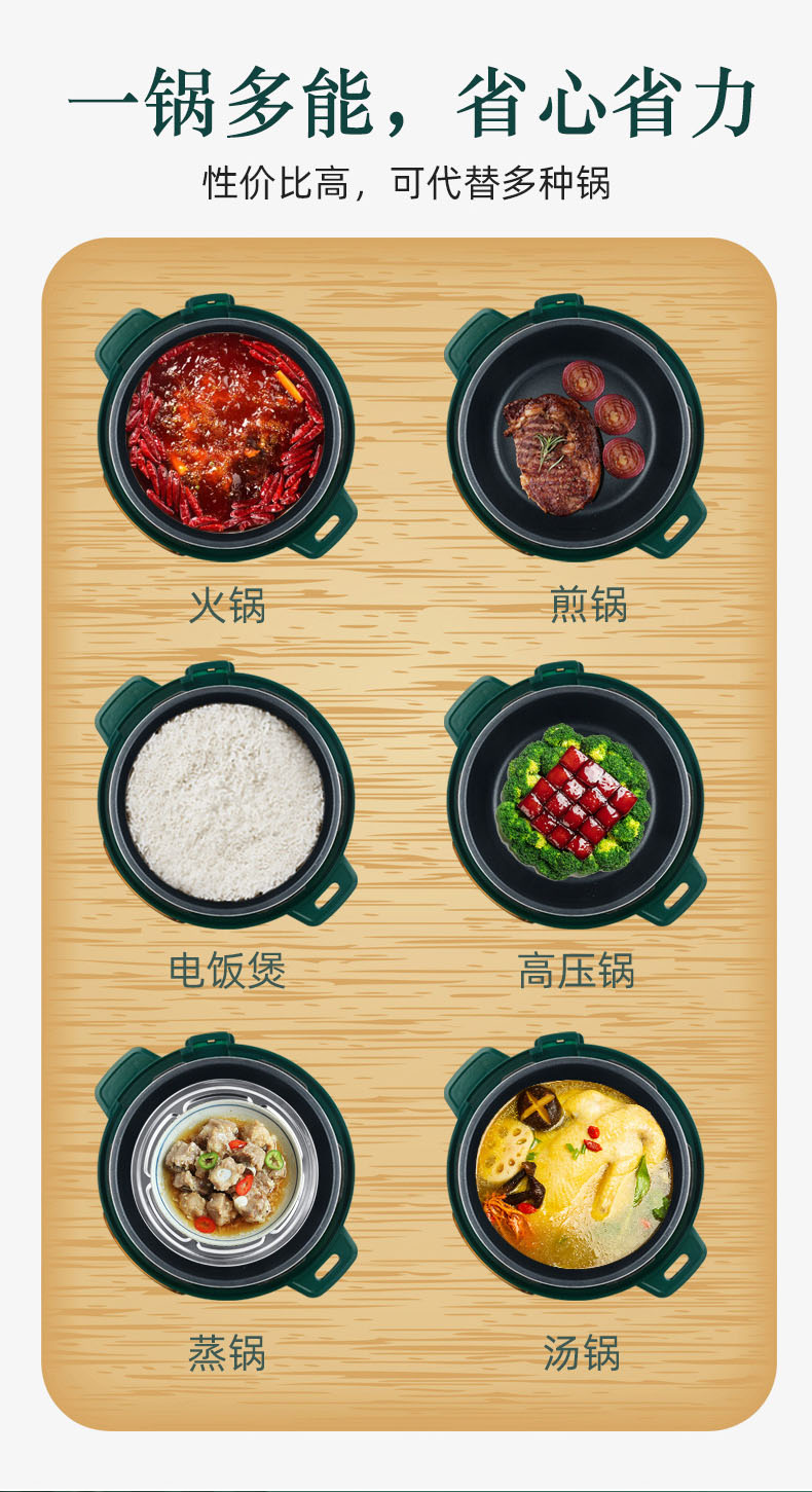 烹煮兩用,帶壓力鍋蓋可立玻璃鍋蓋,鍋蓋自由切換,口感心選。煮煎炒炸燜鍋,精選你的廚房。1000W速熱底盤加熱,可快速導熱至整個熱盤,實現均火效果受熱更均勻。一鍋雙膽,蒸煮間隔內膽放置蒸格,即可蒸/煮同時進行,無隔間內膽,燜/煮/燉/火鍋一鍋搞定。五層加厚材質給健康增添煲。微電腦預設菜單,內設程序輕輕一按即啟,兩種烹煮模式,獨特雙重精準溫控。內置營養(yǎng)烹煮程序,微電腦預約設計,預約時間檔位長短可調控美味不過火候,一鍋多能性價比高,可代替多種鍋,10大安全保護貼心安全防護安心順享美味。小巧機身一身技藝適合1-4人。放著不占地收納起來也方便。