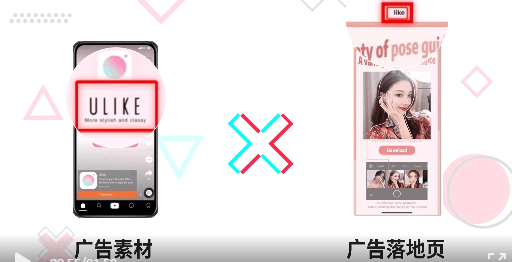 廣告素材中是“ULIKE”,廣告落地頁是“LIKE”,二者的文字素材明顯不符合。