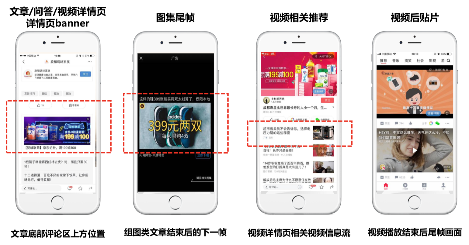 展現(xiàn)位置: 文章/問答/視頻詳情頁(詳情頁banner)、圖集尾幀、視頻相關(guān)推薦、視頻后貼片等