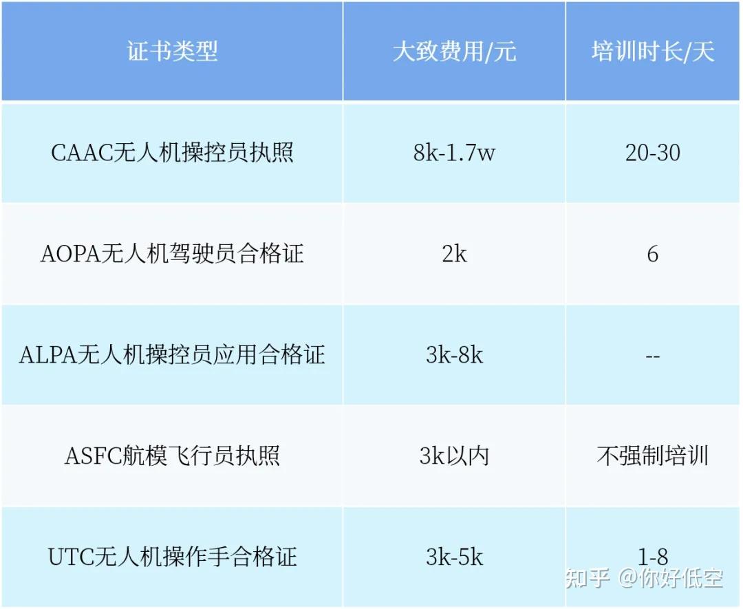 (圖:考證費(fèi)用與培訓(xùn)時(shí)長(zhǎng) 制圖:你好低空)